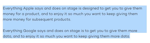 : This is the key difference between Apple and Google.