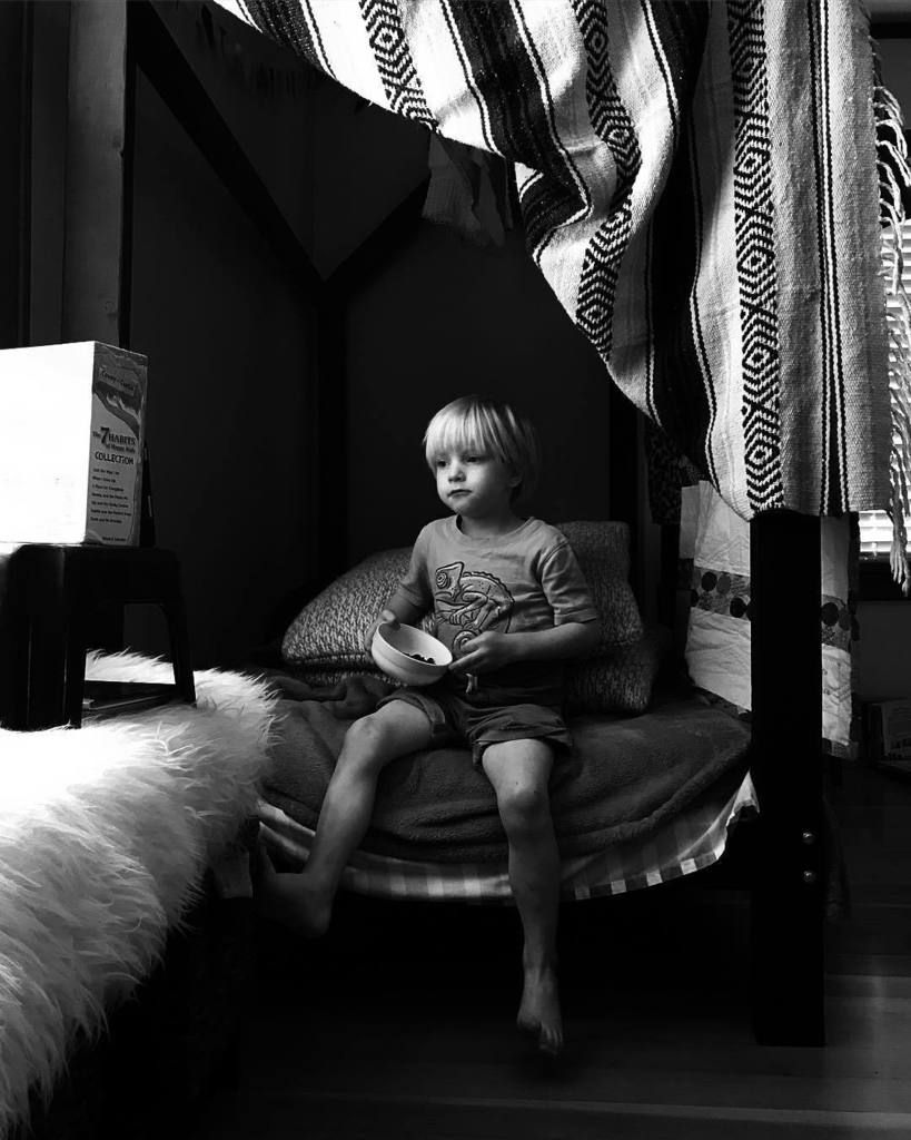 Hanging out in his room.